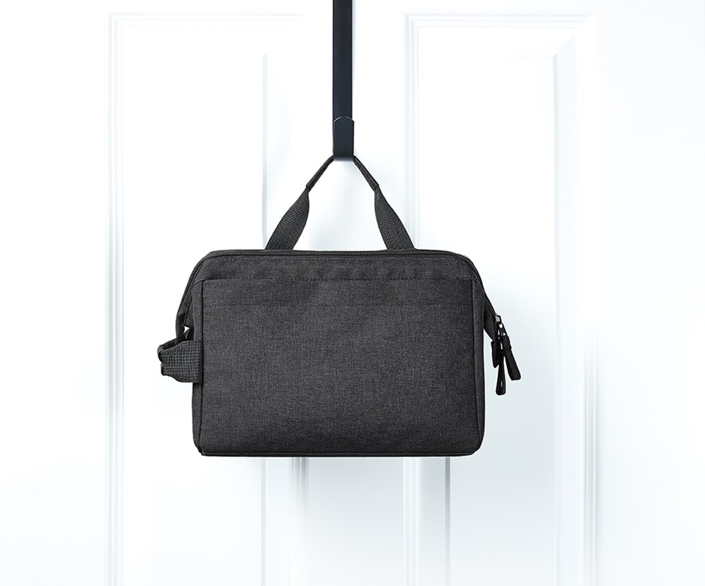 The Halfar CIRCLE Wash Bag is a premium, sustainable accessory. This product is manufactured using durable rPET material. This makes the wash bag an eco-conscious choice for corporate use. The design features a sturdy metal bracket opening. This allows the bag to stand upright or be easily hung during use. You can fully customize this wash bag with your company logo.