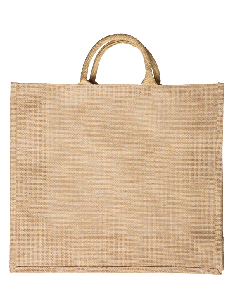 This is the XL Jute Shopper in Natural color. It is a robust, large-capacity carrying bag. Jute is a sustainable and durable natural fiber. You can use this shopper for large volume purchases or as a robust promotional gift. This jute bag is designed for customization. You can easily brand this item with your own logo or specific message.