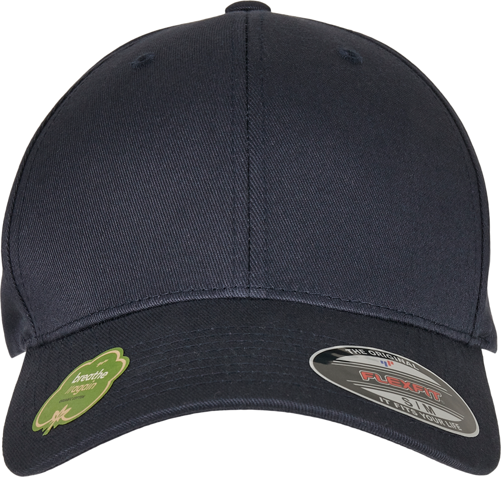 The cap features a durable 98% organic cotton blend. It includes 2% elastane for a flexible fit. The design incorporates a reinforced front panel. A rounded brim provides a classic look. Patented Flexfit technology ensures consistent comfort. It adapts perfectly to your head size. Available sizes include M and XL. You can choose from colors such as Navy, Black, Dark Navy, White, Red, Dark Grey, Pale Grey, and Burnt Olive.