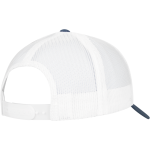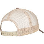 This trucker cap is made from 65% polyester and 35% cotton. It features a classic 5-panel design. The cap has a convenient snapback closure. The visor includes 8 rows of decorative stitching. It comes in a one-size fit. Available colors include Beige, Khaki, and White.