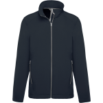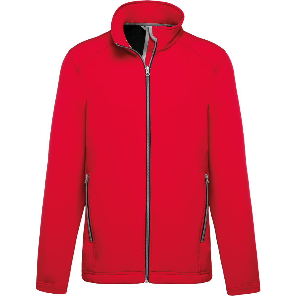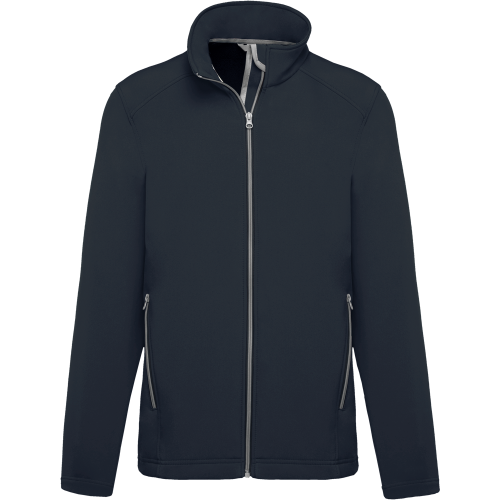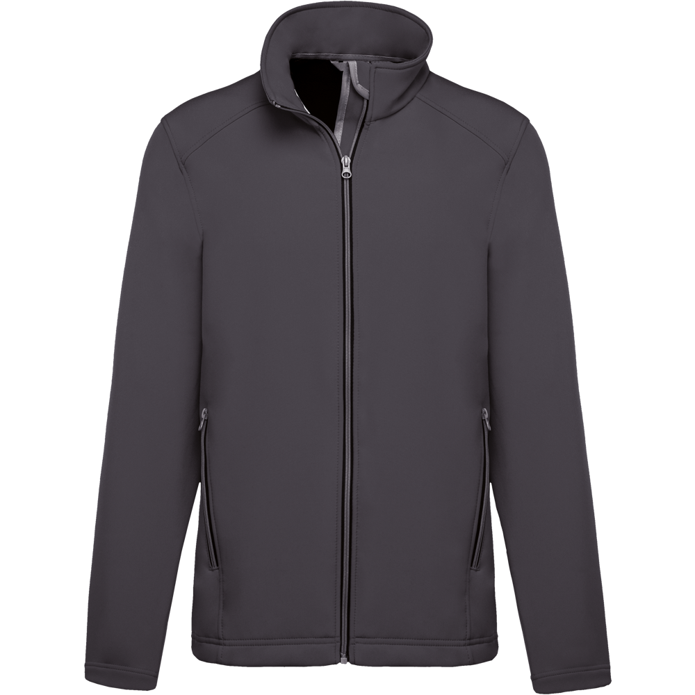 This is the K424 2-layer men's softshell jacket. It is a versatile piece of outerwear. The jacket combines a polyester outer layer with an elastane blend. Inside, it features a soft microfleece lining. This design provides comfort and protection. It is suitable for various outdoor activities.