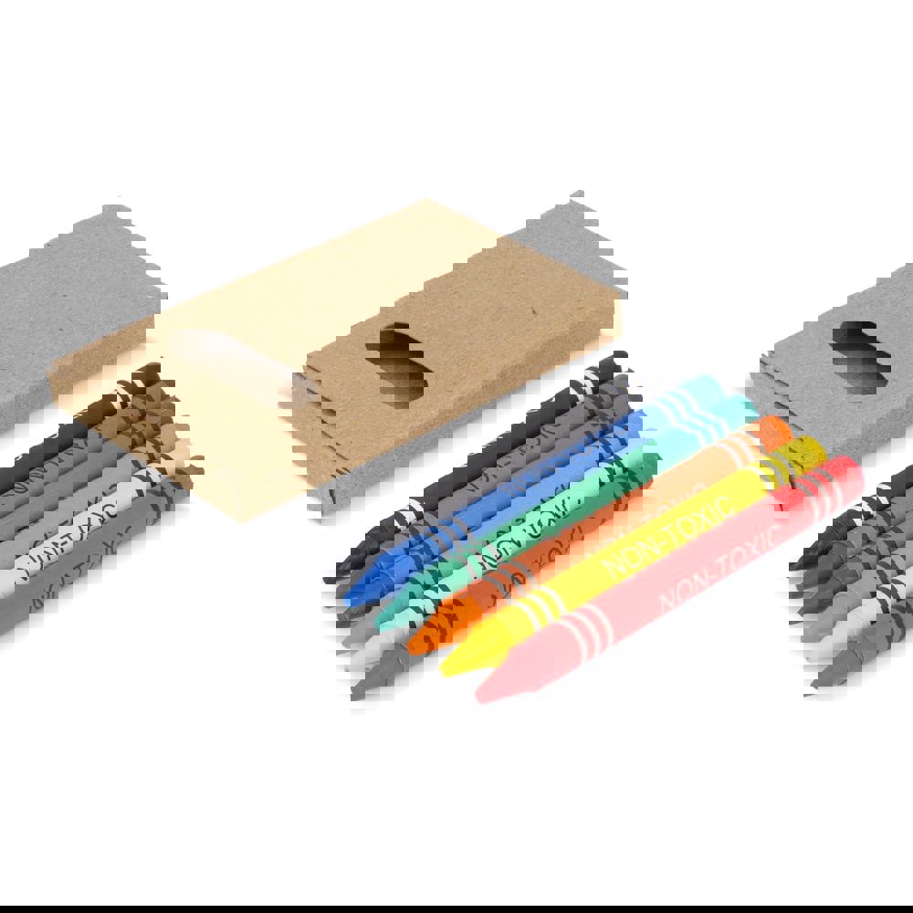 This compact craft box includes 6 wax crayons, perfect for creative projects on the go. A simple and practical choice for art activities.