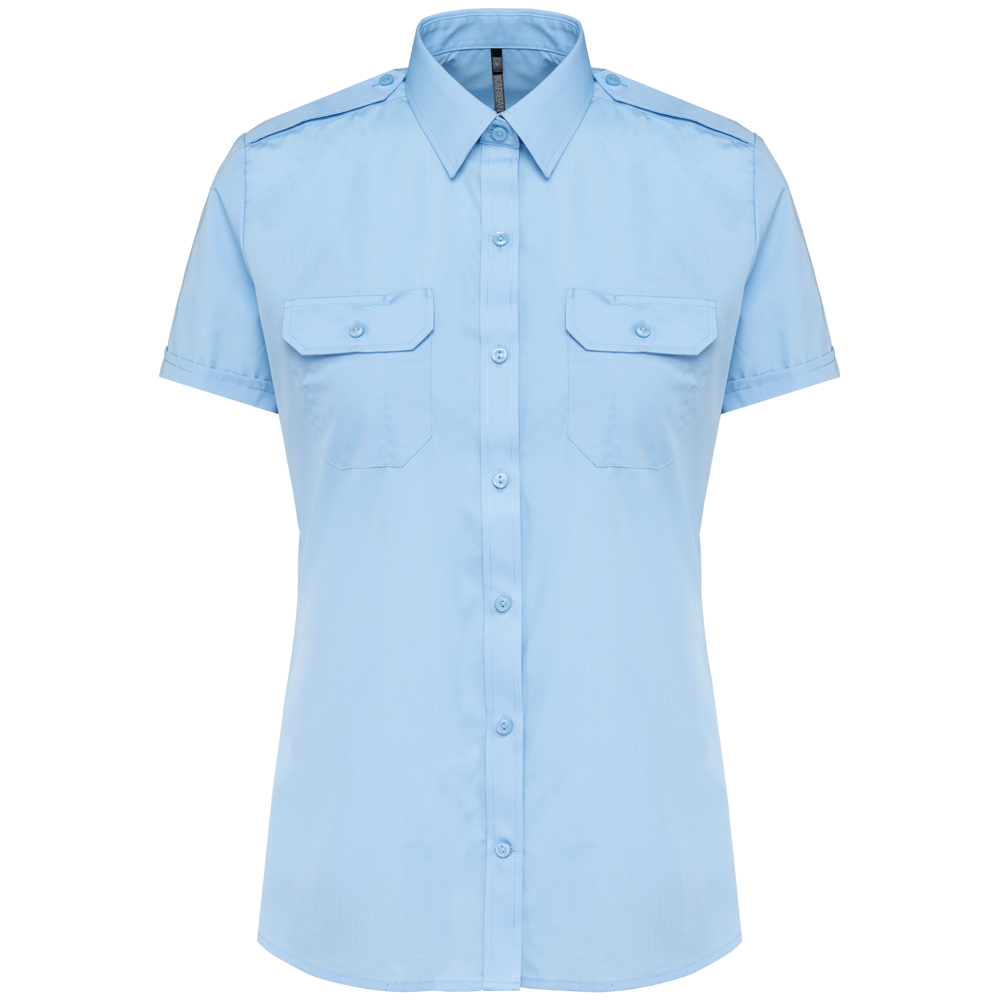 This is the K504 Women's Short Sleeve Pilot Shirt. It is designed for professional use. The shirt is available in Black, Sky Blue, and White. You can select from sizes S, M, L, XL, and XXL. This product offers a professional appearance for your team.
