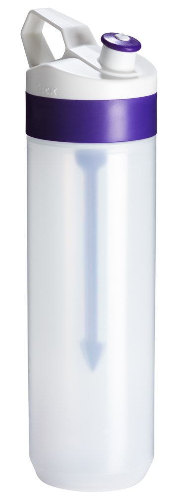 This is the Tacx Fuse Bottle. It is a modern, specialized lifestyle bottle. It features a unique fruit fusion option. This allows you to naturally flavor your drinks. The bottle has a capacity of 450 ml. It is manufactured from soft, squeezable polyethylene. This material is certified BPA-free.