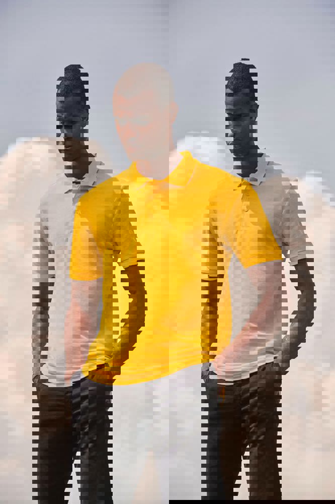 65% polyester / 35% katoen. Knooplijst met 3 toon op toon knopen. Nektape. Verstevigde naden op de schouders. Kraag en mouwuiteinden in 1×1 rib. Wasbaar op 60°C.