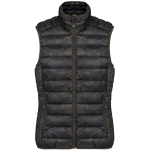 This is the K6114 Ladies’ lightweight sleeveless down jacket. It provides warmth. The jacket is designed to be ultralight. You can wear it as an outer layer or under a coat.