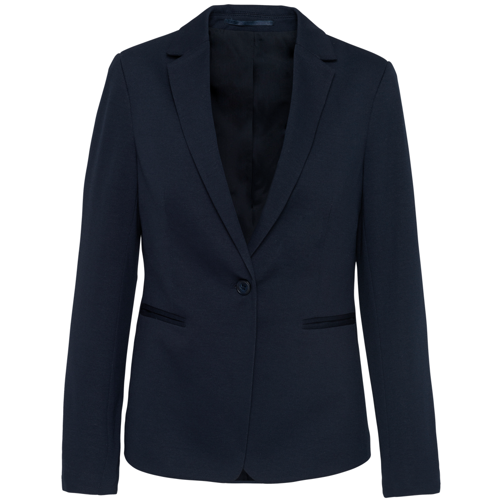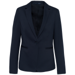 This is the K6133 Women's Jersey Blazer. It offers a contemporary design. The blazer provides a comfortable fit. It is suitable for various professional settings. You can choose from sizes ranging from 32 NL (34 FR) to 44 NL (46 FR). The blazer is available in Light Grey Heather and Night Navy Heather colors.