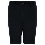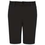 The K7007 Chino Bermuda shorts are made from 98% cotton. They contain 2% elastane for added stretch. The fabric is enzymewashed. This provides extra softness. The waistband includes belt loops. A metal button and zip fly secure the shorts. You will find two stitched front pockets. There are also two back welt pockets. An elastic, adjustable waistband is inside. This allows for a perfect fit. Herringbone tape reinforces the inner design. Stitching on the crotch, front, and back provides extra strength. The hem is finished with a single needle stitch. This ensures a clean look.