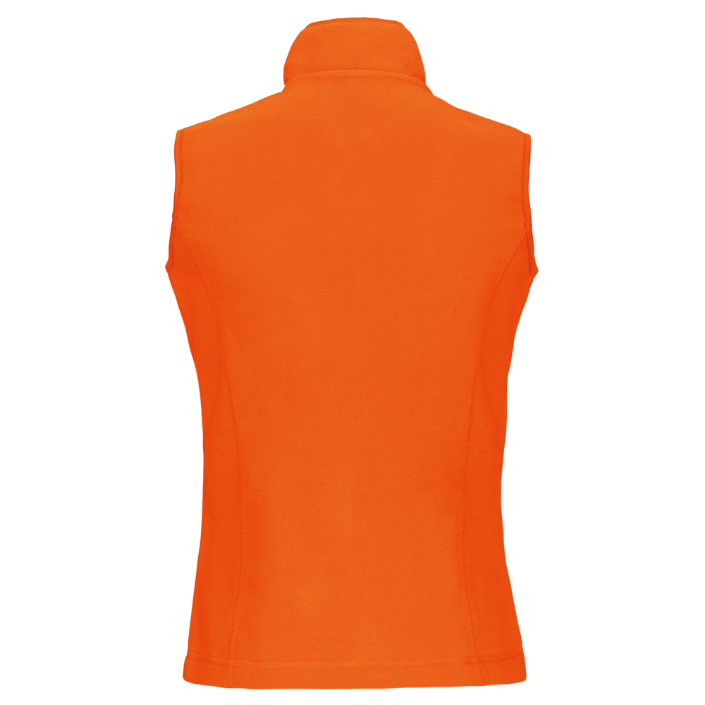 This women’s microfleece bodywarmer has two side pockets. These pockets close with zippers. The bodywarmer features a tailored cut. This provides a flattering fit. Piping finishes the collar. Piping also finishes the armholes. The zippers also have piping details. These details add to the bodywarmer’s quality and style.