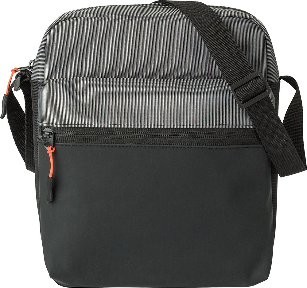 The shoulder bag is crafted from 500D Two Tone material. It comes in a stylish grey color. The shoulder strap is adjustable for comfort. It includes subtle color accents. A small front pocket offers quick access storage. This pocket has a secure zipper. The main compartment is spacious. Inside, you will find a small zippered pocket at the back. This keeps smaller items organized.