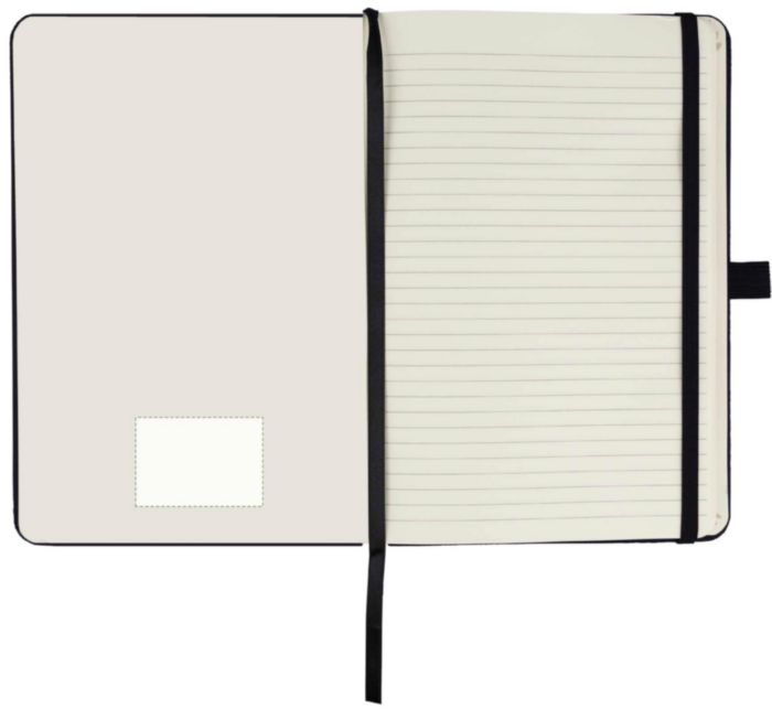 A: This quality notebook is available in four versatile colors: Black, Grey, Blue, & Green, allowing you to select the best match for your existing branding or corporate identity.