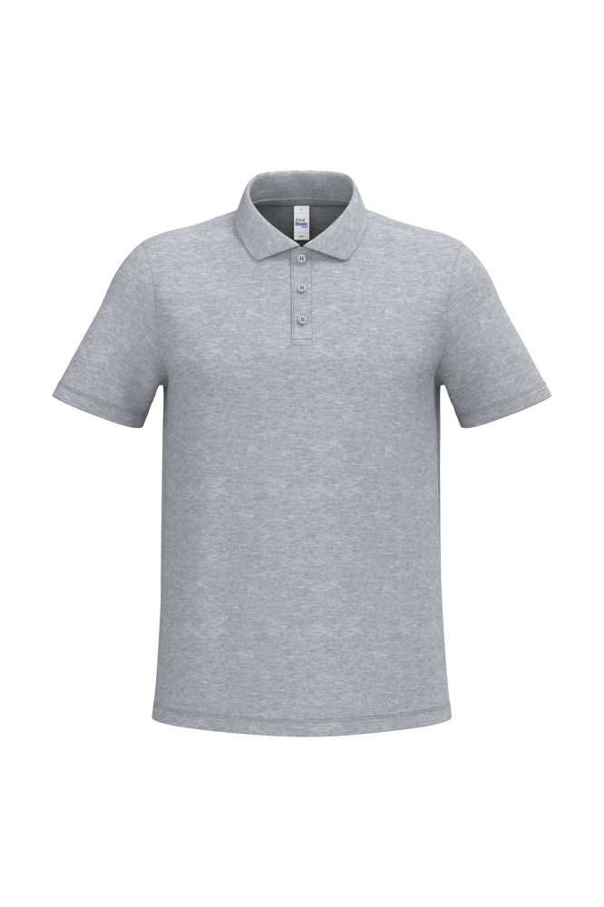 The Men's Piqué Polo Shirt is crafted for comfort and durability. Solid colours are 100% cotton. The Ideal Ash Heather colour is 99% cotton and 1% viscose. The Ideal Oxford Grey colour contains 90% cotton and 10% viscose. It features a classic piqué knit construction. The cut is straight. It has a collar in 1x1 rib knit. The placket includes three tone-on-tone buttons. An internal tone-on-tone neck tape adds comfort. Side slits are included for ease of movement. Sleeve cuffs and the hem are finished with double stitching. A detachable brand label allows for re-branding.