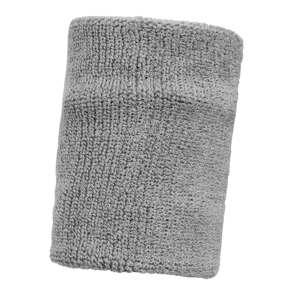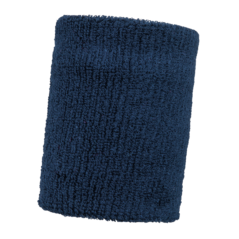 The wristband is made from 80% cotton, 17% polyester, and 3% elastane. This blend creates a stretchy and absorbent terry fabric. It is a one-size, broad, comfortable, and ergonomic wristband, measuring H 11 cm x L 8 cm. It is available in Black, Fuchsia, Light Grey, White, and Sporty Navy. Each wristband is sold individually.