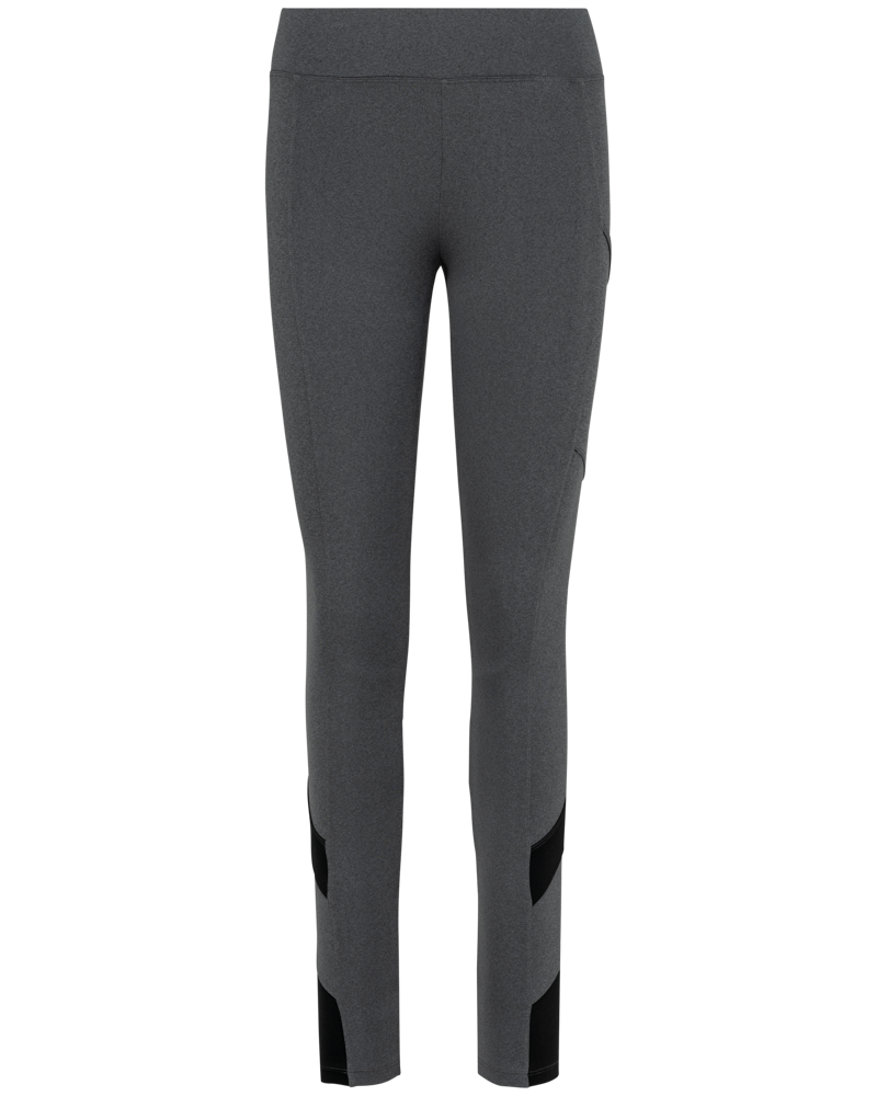 These functional leggings are made from a blend of 81% polyester and 19% elastane. The contrasting inserts consist of 90% polyester and 10% elastane. The fabric offers comfortable stretch. You will find contrasting inserts on the calves and sides for a modern look. The supportive waistband features full-length elastic for optimal comfort. A storage pocket is located on the left side. The leggings feature double tone-on-tone stitching on the waistband, between the legs, and on the front and back. The hem is finished with double stitching. A tear-away brand label is included for easy rebranding. These leggings are available in sizes XS, S, M, L, XL. You can choose from Black or Dark Grey Heather colors.