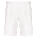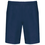 The sports shorts are made from 100% polyester. This fabric is quick-drying. They include two practical side pockets. The waist is elastic and adjustable with a drawstring. There is a mesh lining inside. A mesh brief provides extra comfort. A side insert is also featured in the design.