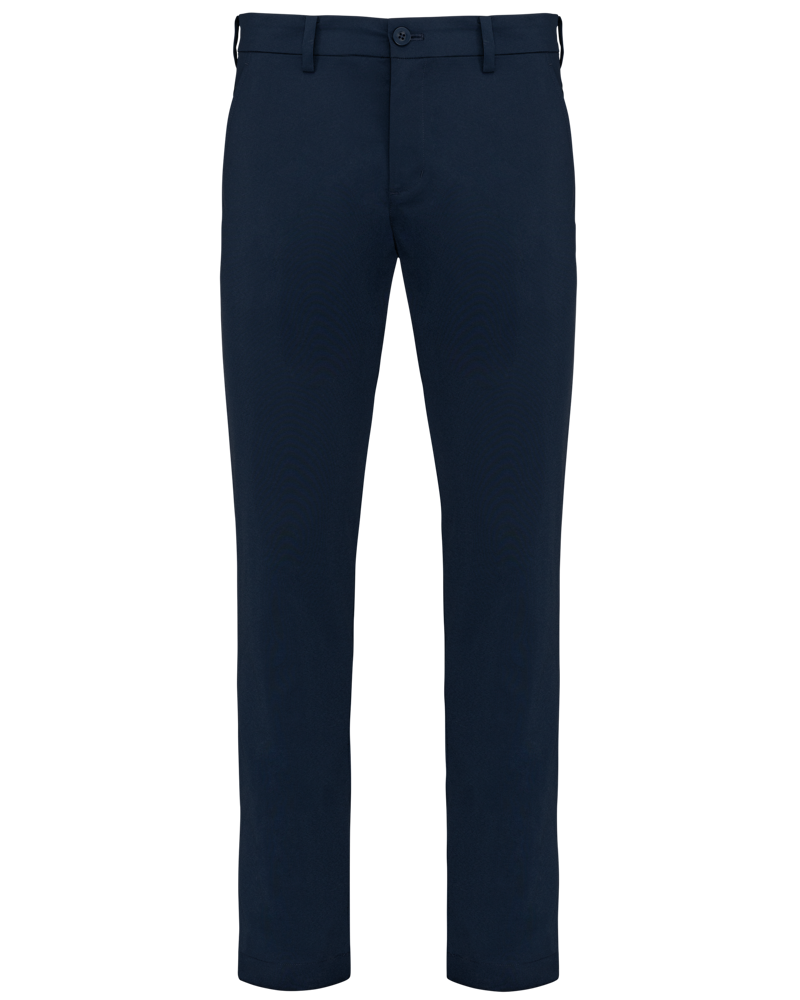 These trousers are crafted from 96% polyester and 4% elastane. The fabric is water-repellent for practical use. It is also supple, providing excellent comfort. The design features a modern tailored cut. You will find practical belt loops. There are two deep side pockets for convenience. Two back pockets with flaps complete the design. These trousers are available in sizes from 42 NL (36 FR) to 60 NL (54 FR). You can choose between Black and Dark Navy colors.