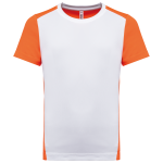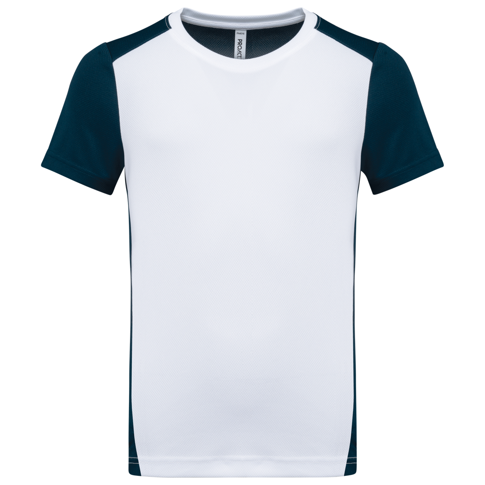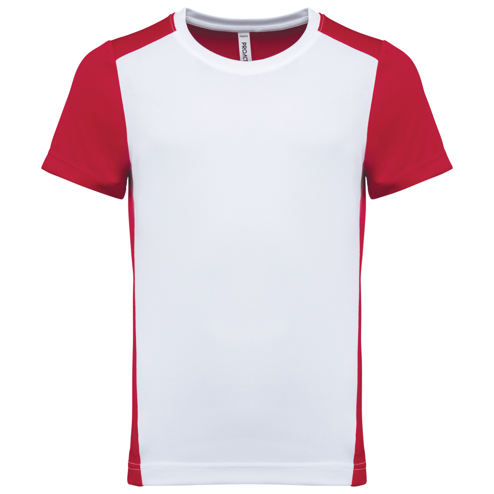 You are looking at a versatile Kids' Sports Shirt. This quick-drying, two-tone ecological shirt is made from 100% post-consumer recycled birdseye-polyester. It is designed for various promotional activities. You can use it for events and trade shows. This sports shirt is ideal for business customers, associations, and events.