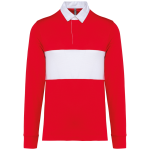 This long-sleeved rugby polo is crafted from sustainable cotton jersey. It is available in various sizes. You can choose from sizes like XS, S, M, L, XL, XXL, 3XL, 4XL, and 5XL. The polo comes in White and Sporty Red colors. This item is designed for a comfortable fit.