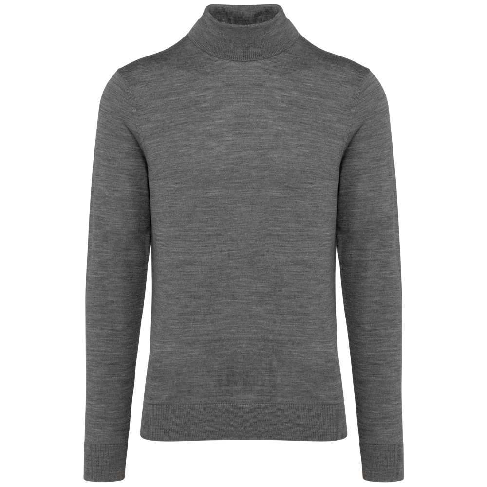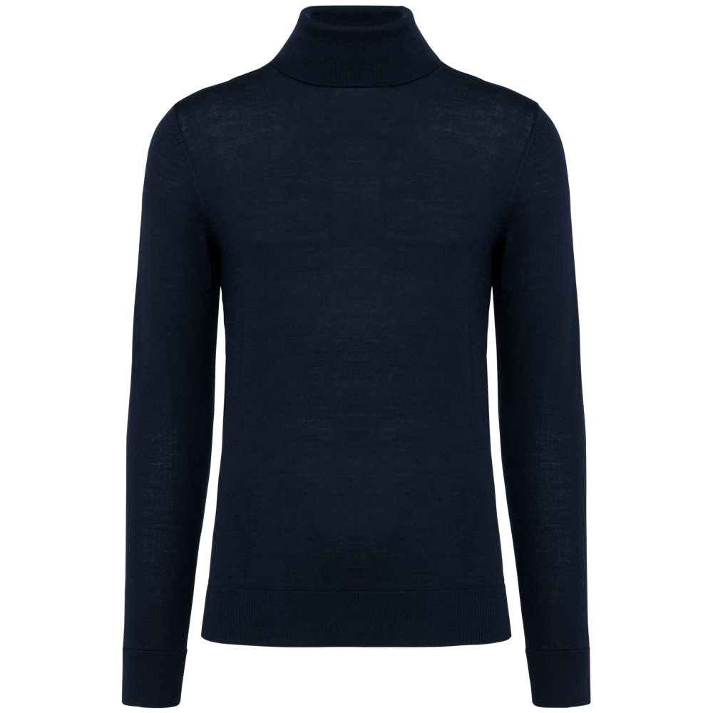 You are viewing a premium Merino Roll-Neck Sweater for men. This garment is crafted from 100% extra fine combed merino wool. It offers both comfort and a refined appearance. This sweater is suitable for various professional settings.