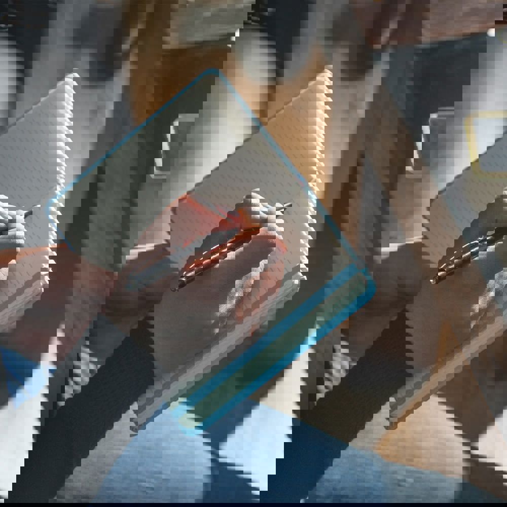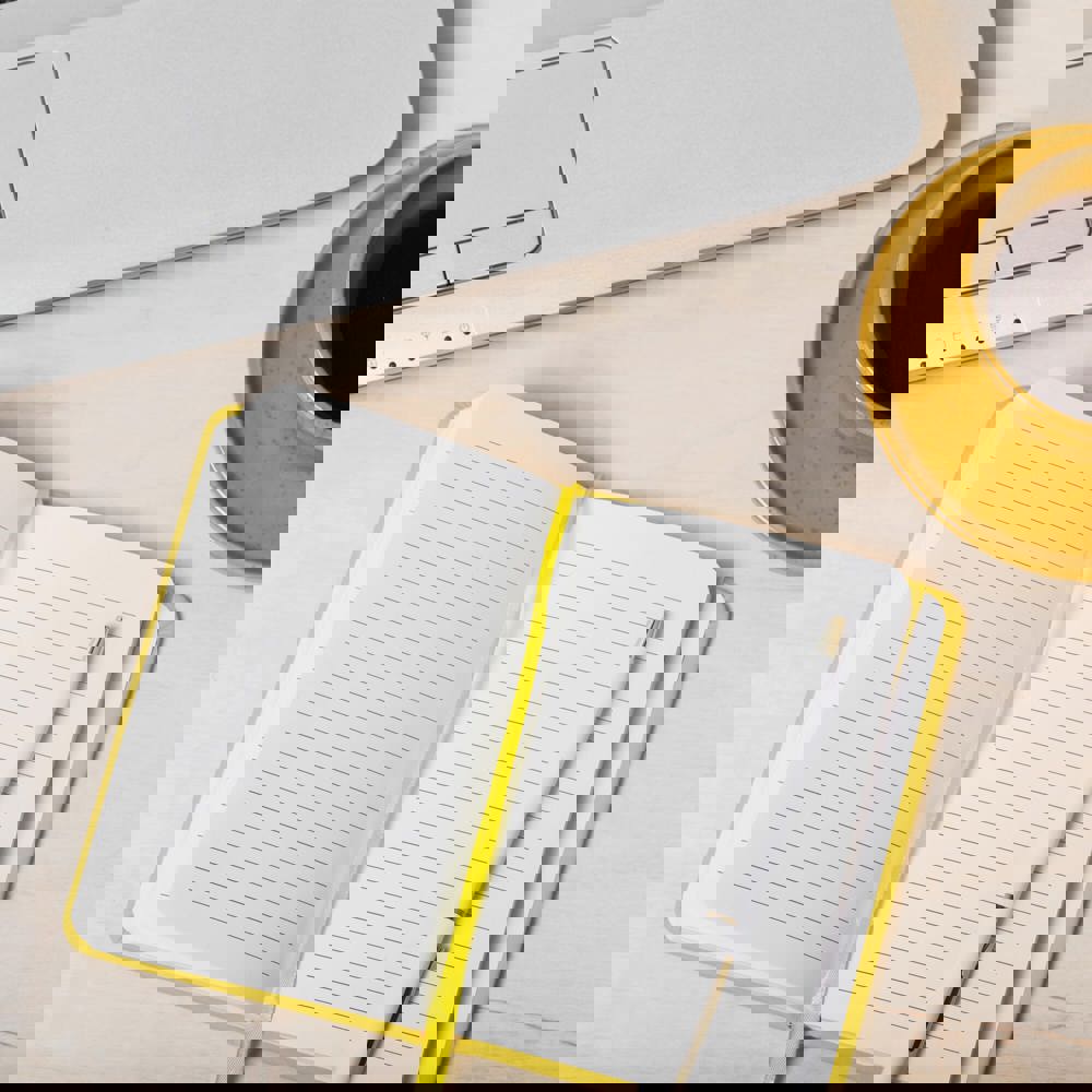 Classic design PU notebook with colour matching elastic strap and ribbon. 96 sheets of white lined paper.