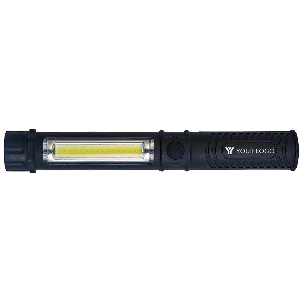 A: This branded utility flashlight utilizes modern COB (Chip on Board) LED technology for powerful, broad-area illumination, combined with a standard LED on the tip for focused tasks.