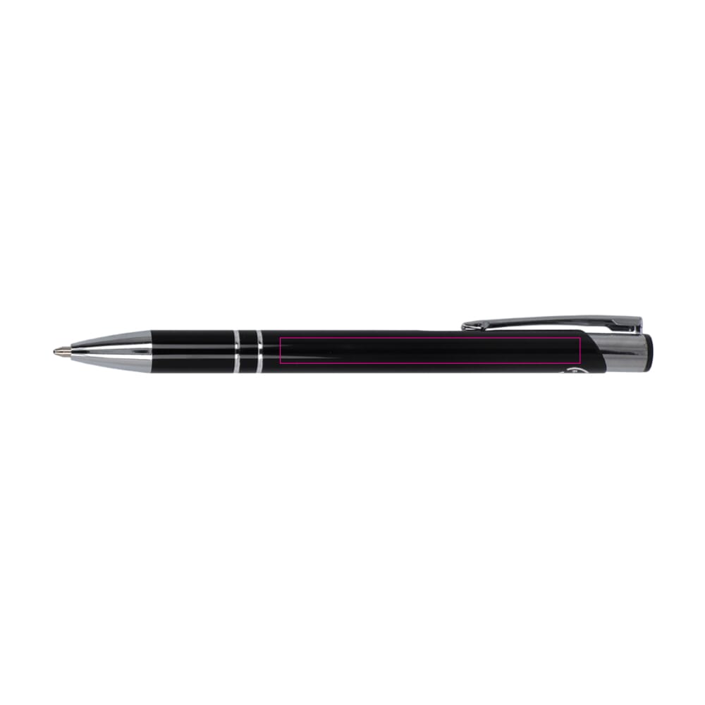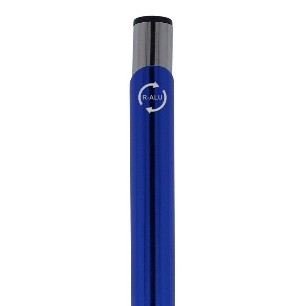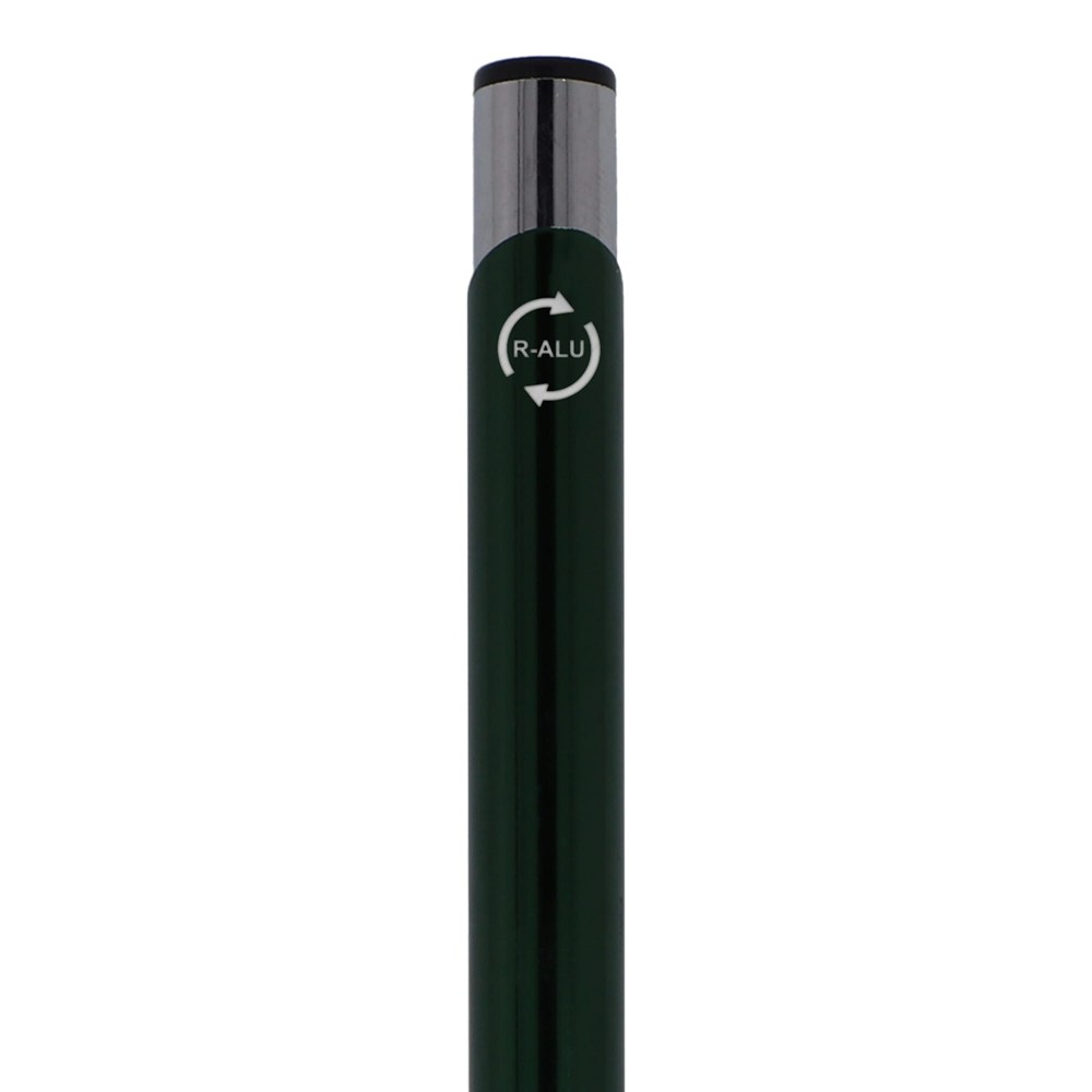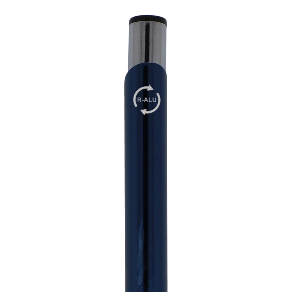 The recycled aluminum edition of our popular Alicante pen, with a shiny finish; an elegant, aluminum ball pen with two rings in the body of the pen to give it that special touch. The pen comes with black writing ink.