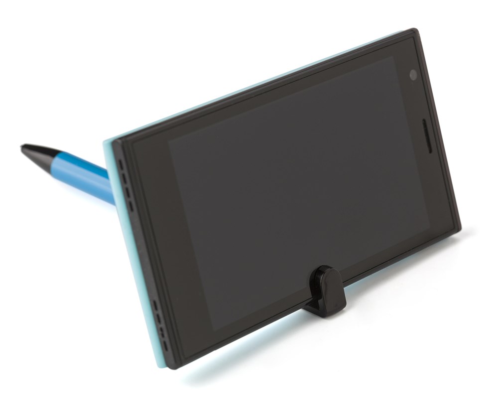 Q: How does the pen function as a phone holder?