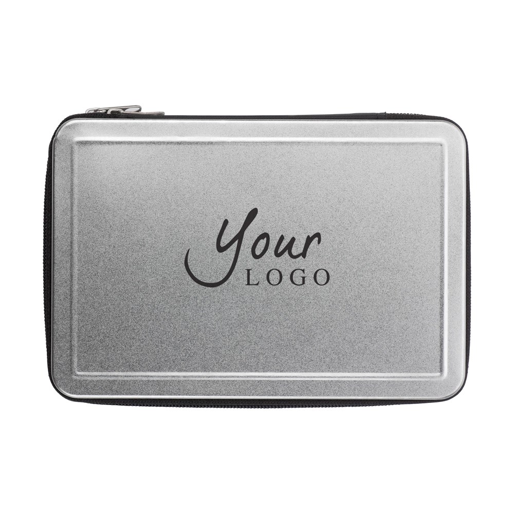 A: We typically recommend laser engraving or high-quality digital printing on the front of the silver case to ensure the customized corporate message is durable and highly visible.