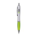 The pen is equipped with a comfortable grip for better control while writing. You can choose from various grip colors including black, red, orange, yellow, blue, green, burgundy, purple, and lime green. The barrel has a sleek silver finish. The pen uses blue ink for all standard writing requirements. The metal clip provides extra strength and a premium look.