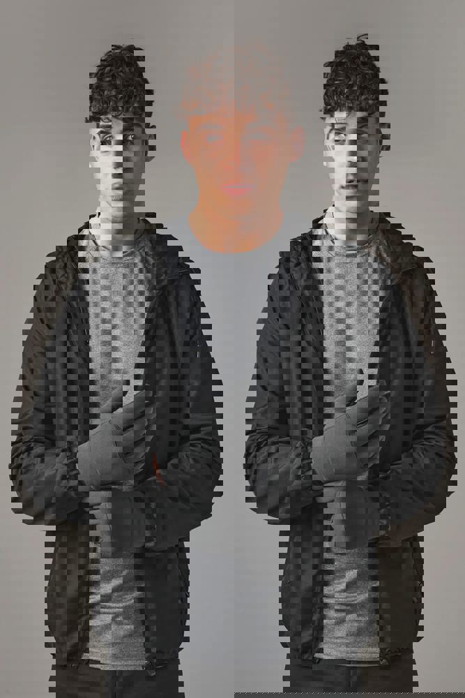 93% polyester / 7% elasthan. Winddicht en licht. Sneldrogend. Ademende Softshell-stof. Geschikt voor gebruik op touchscreens. Ergonomisch model.