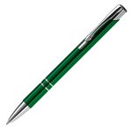 Elegant aluminum pen. With two rings in the body of the pen as remarkable detail. Blue writing ink plastic refill.