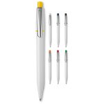 The classic and elegant hardcolour Semyr ball pen with coloured ring, pusher and with chromed clip. The pen comes with a Jumbo refill with blue writing ink. The pen has a pusher mechanism and is made of ABS, made in Europe. From 5.000 pieces own colour combinations possible.