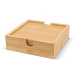 Each set contains four bamboo coasters. They are crafted from natural bamboo. Bamboo is a durable and sustainable material. The natural color complements any decor.