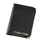 Driving licence and document wallet made from imitation leather, with metal protective corners.