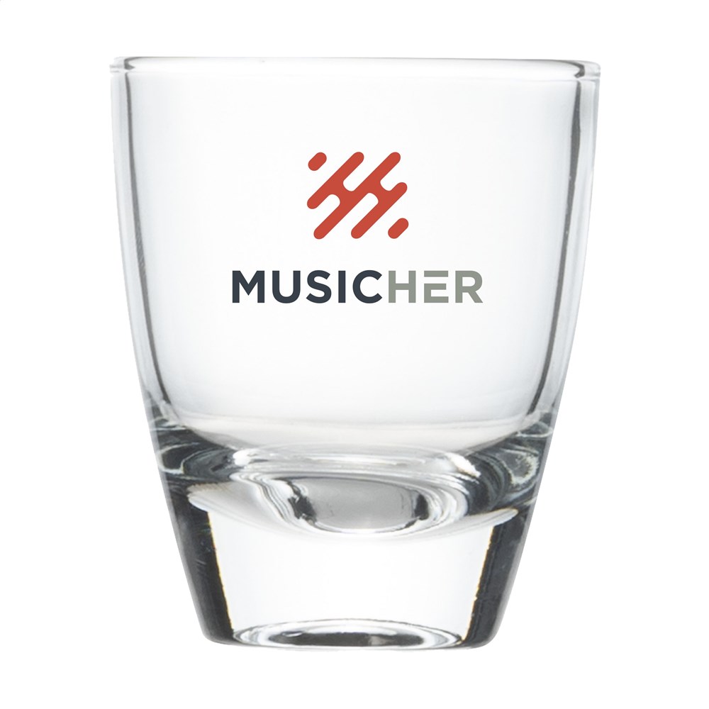 This is a classic shot glass with a solid bottom. It is designed for various promotional needs. The shot glass has a capacity of 50 ml. It is also made in Europe.