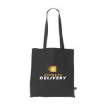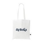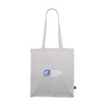 This tote bag is a sustainable carrier made from 150 g/m² recycled material. The fabric consists of GRS certified recycled cotton and recycled polyester. You can use the long handles to carry the bag comfortably over your shoulder. This product offers an environmentally friendly alternative for daily use.