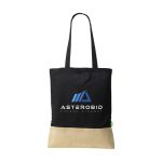 This is an Organic Shopper custom print tote bag. It is made from 100% organic cotton (160 g/m²) and sturdy jute. This bag features long handles for comfortable carrying. It offers a capacity of approximately 8 liters. The bag is black. You can brand this organic shopper with your custom logo.