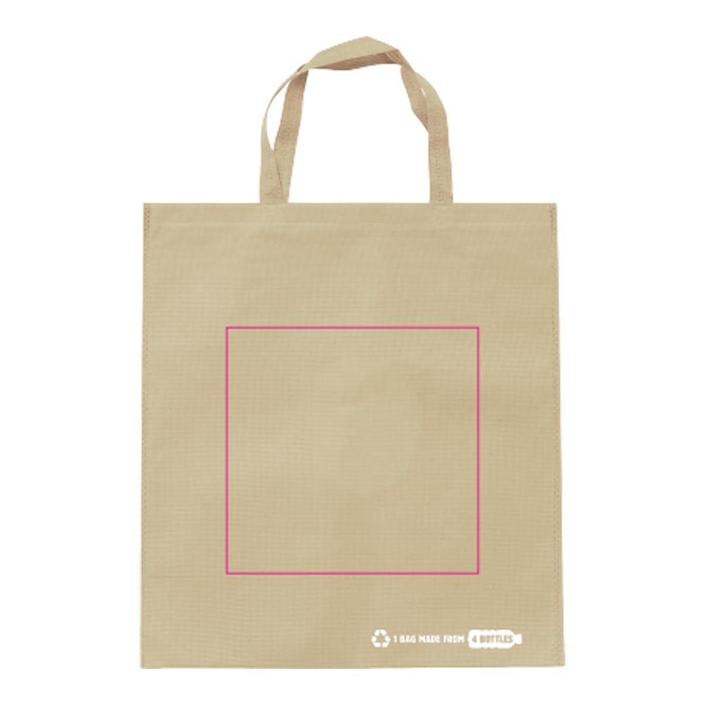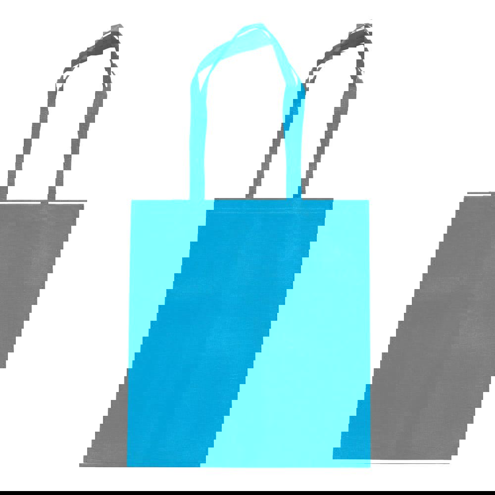 You are looking at an R-PET Carrier Bag. This bag is made from 100g/m² recycled PET material. It offers a sustainable solution for your promotional needs. You can choose from blue, dark blue, light green, or ecru colours.
