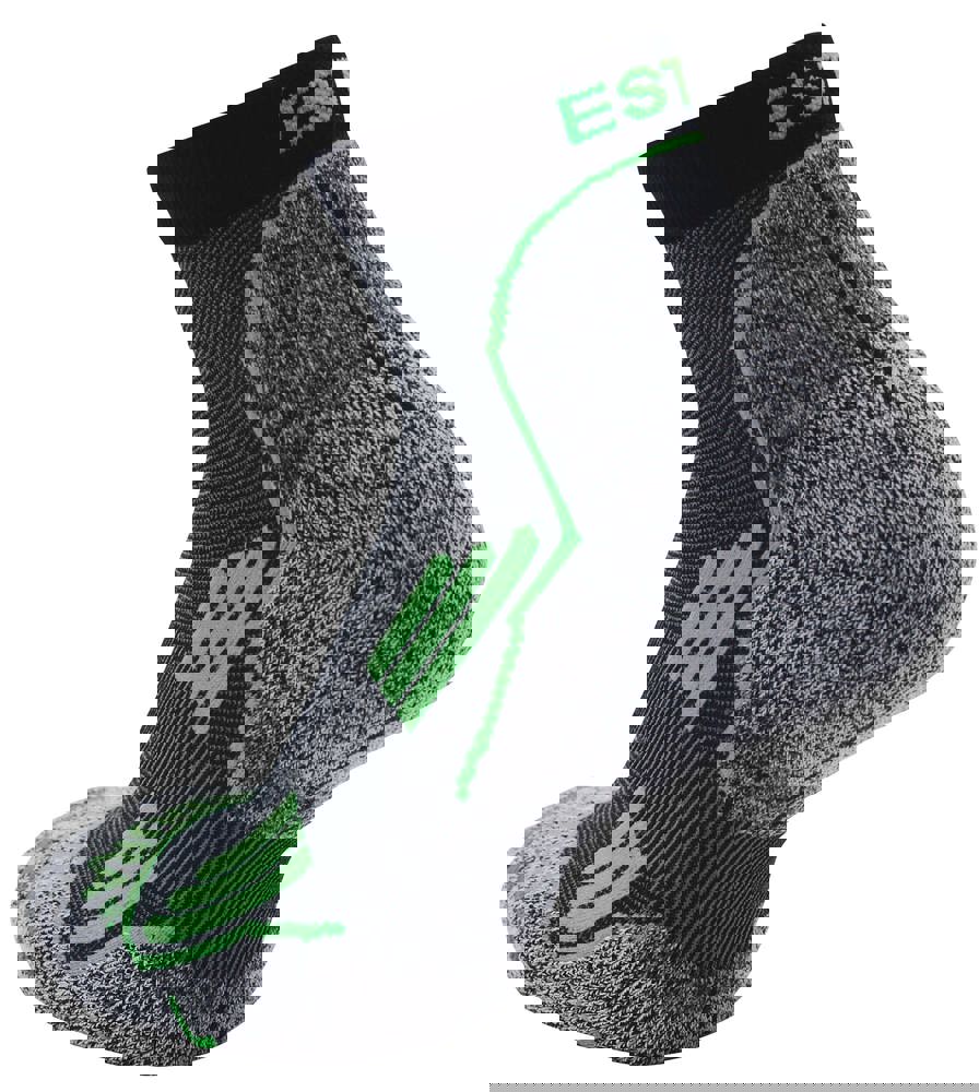Ontwikkeld om te dragen in veiligheidsschoenen. Dun en licht – Bedekt de enkel. Cordura® versteviging aan hiel/tenen. Sterk bestand tegen wrijving. Dit paar sokken wordt 2 jaar gegarandeerd zonder gaten in de hiel en/of tenen, mits de wasvoorschriften worden opgevolgd.