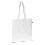 The bag uses Fairtrade-certified cotton. It offers a spacious main compartment. The dimensions are 38x42 cm. Long handles allow for easy over-the-shoulder carrying. This cotton bag is a sustainable choice. It is reusable and durable.