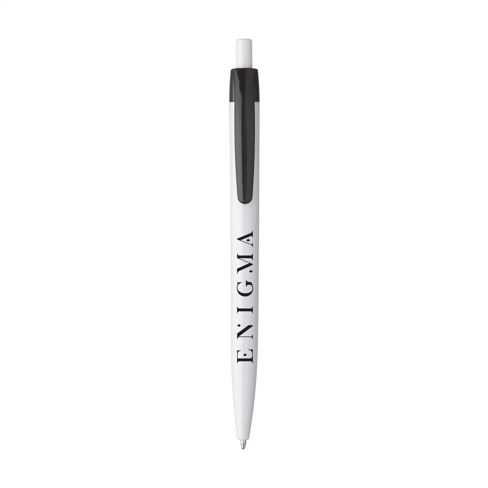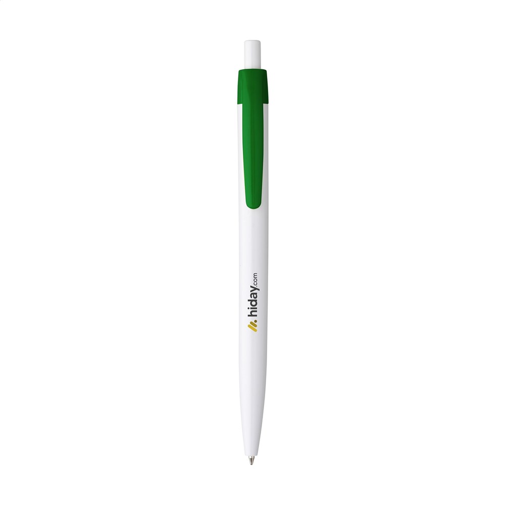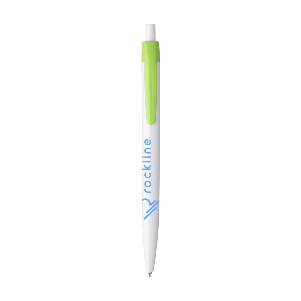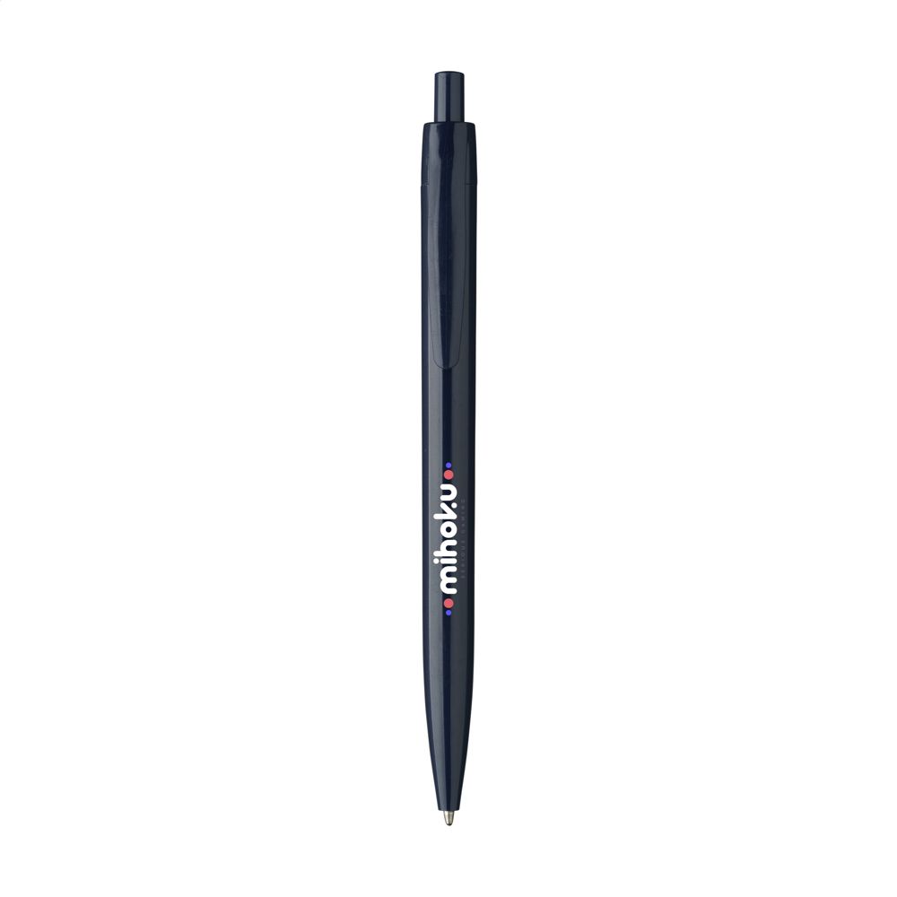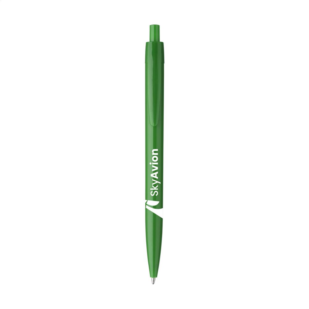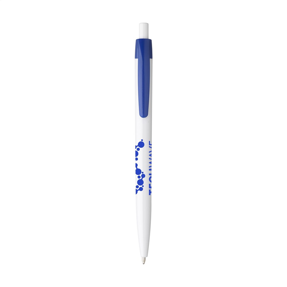 This promotional pen is made from lightweight and durable plastic. The pen writes in blue ink. You can choose from a wide range of colors including Navy, White, Black, Red, Orange, and Yellow. Other available options are Blue, Dark Blue, Light Blue, Green, Dark Green, Purple, and Pink. The design offers a comfortable writing experience for the user.
