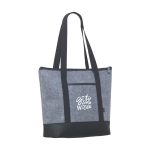 This cooler bag is made from durable RPET felt. It has an insulating aluminum inner lining. The total capacity is approximately 20 liters. It features long handles for comfortable carrying. A zipper closure secures the main compartment. There is also a convenient slip pocket on the front. The bag is grey in color. It is GRS-certified. 55% of the material used is recycled.
