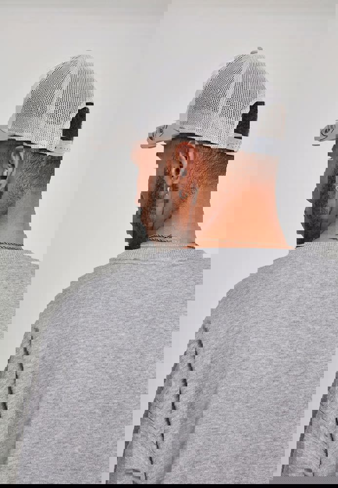 60% katoen, 40% polyester (mesh: 100% polyester). Platte vorm, voorste deel met een versterkt canvas, middennaad en snapback-stijl.