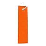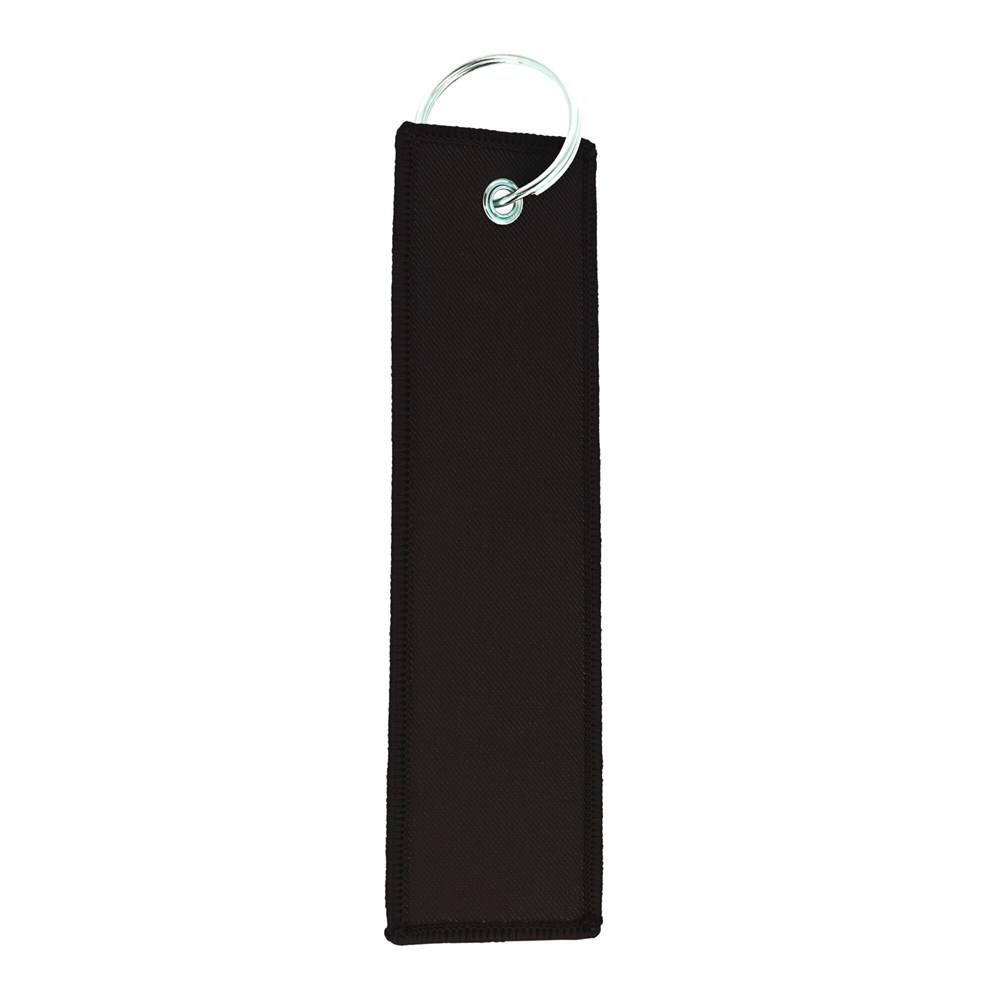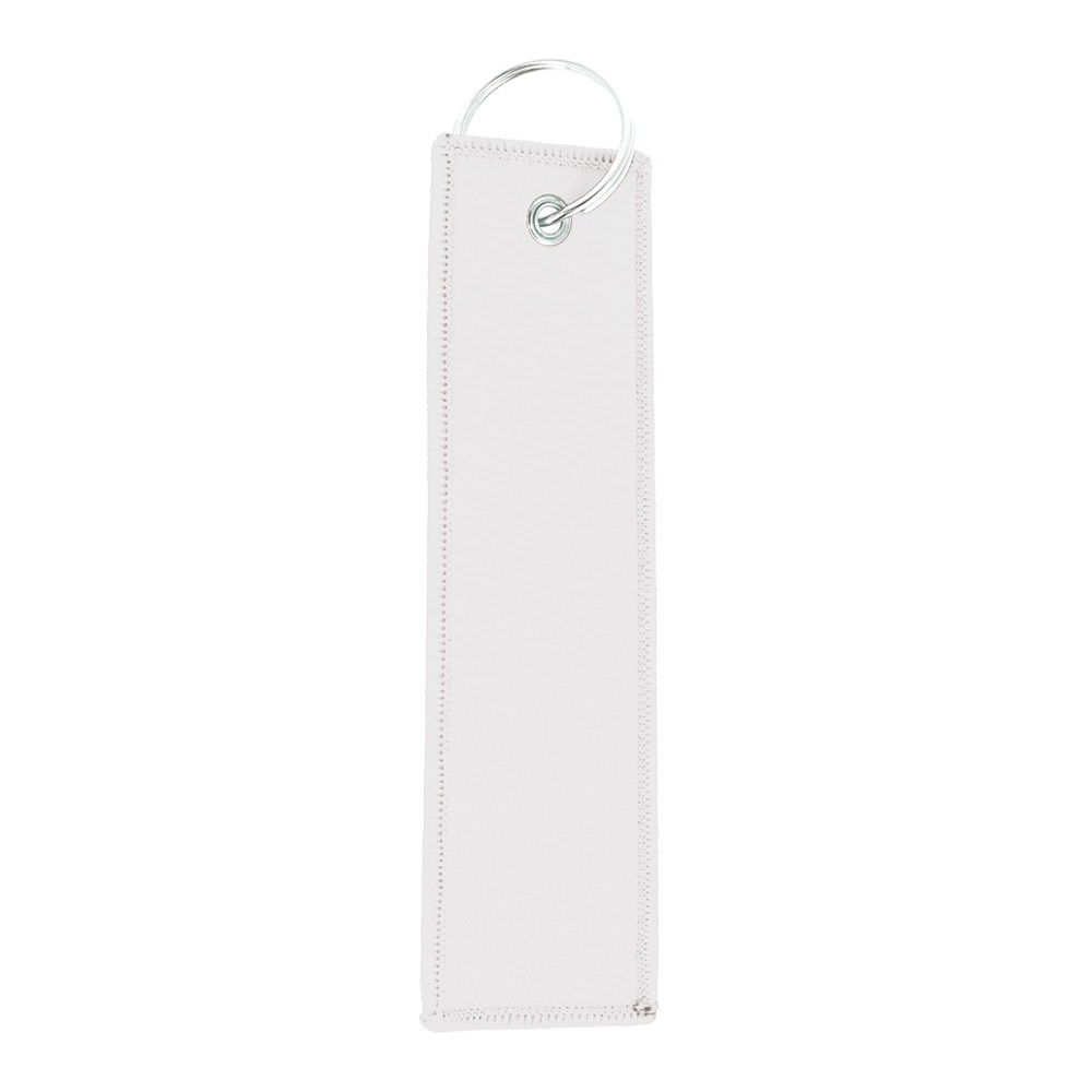 This is a flight tag keyring. It features a large print area. Use it to identify luggage, bags, or travel essentials. It is a durable way to mark your items. This flight tag keyring is available in White, Black, Red, Orange, and Blue.