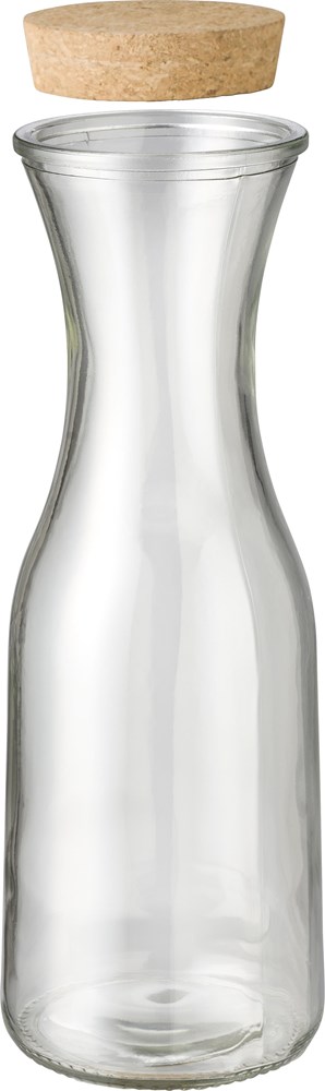 You are viewing the Recycled Carafe Rowena. This elegant carafe holds 1 liter. It features a natural cork lid. The carafe is crafted from recycled glass. It is a sustainable choice for your promotional needs.