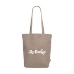 This is a Recycled Canvas Bag. It features long handles. The bag is made from extra heavy 260 g/m² recycled cotton canvas. It is GRS-certified. The bag contains 92% recycled material. Its capacity is approximately 15 liters. You can get this bag in Navy, Black, Brown, or Olive. This bag is suitable for business clients, associations, and events.