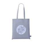 This recycled cotton shopper is a sustainable carrier bag designed for functional daily use. The bag is manufactured from 80% recycled mixed cotton combined with 20% recycled polyester. It features a fabric weight of 180 g/m² which provides necessary strength for shopping. The shopper is equipped with long handles for easy carrying over the shoulder. This product is GRS-certified and has a total capacity of approximately 8 liters.