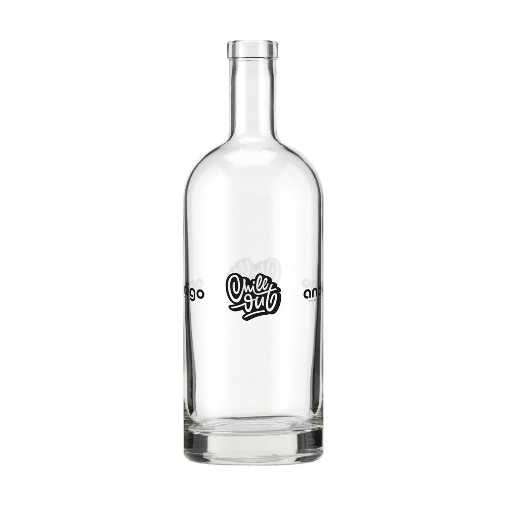 The bottle is made from high-quality glass. The wooden cap includes a synthetic cork for a secure seal. The bottle is dishwasher safe. The cap is not dishwasher safe. Hand washing is recommended for printed designs. This helps preserve your logo's integrity. It has a generous 1-liter capacity. The bottle features a sturdy base. It is a European-made product.