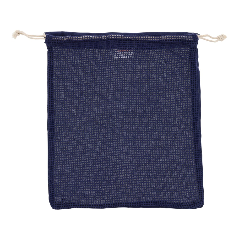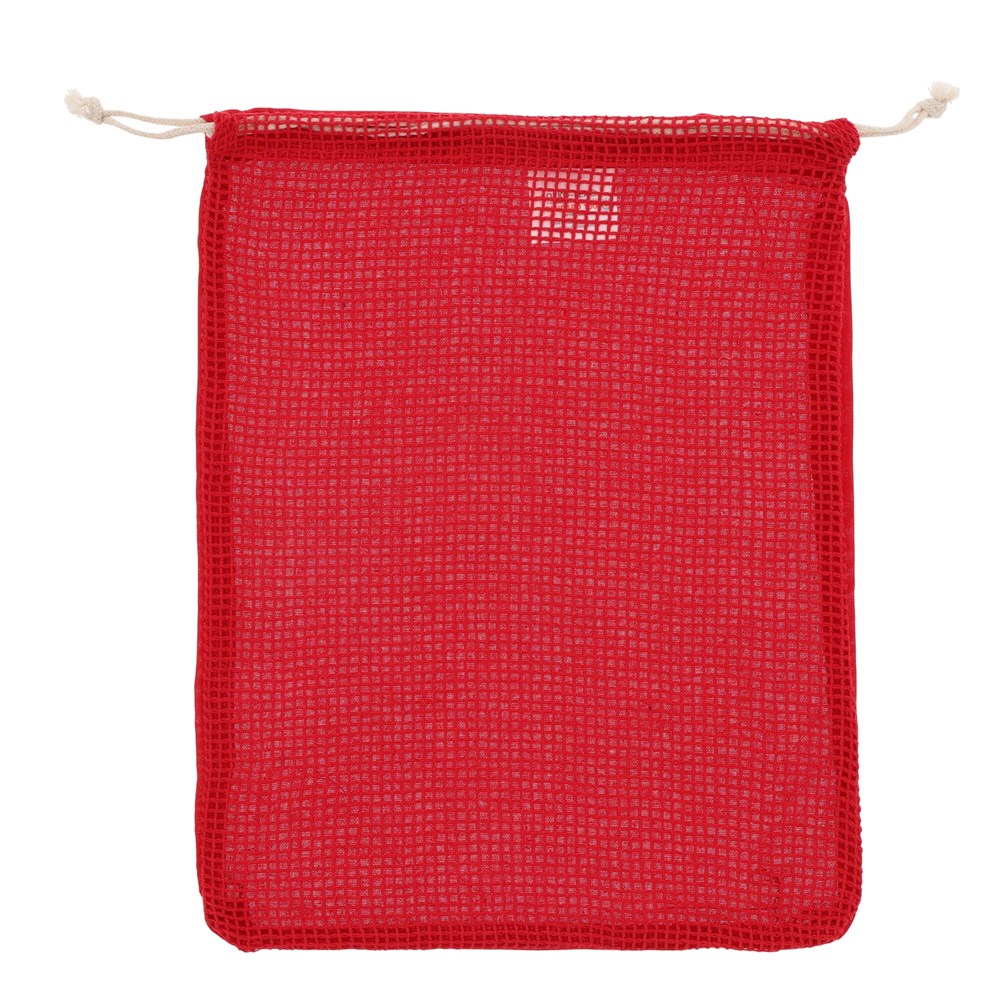 This produce bag is crafted from OEKO-TEX certified cotton. Its dimensions are 25x30cm, offering ample space for various items. The bag is available in Black, Red, Dark Blue, and Light Green. It features a practical mesh design, making it ideal for fruits and vegetables. You can wash this bag at low temperatures. It is designed for repeated, long-term use.