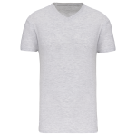 Effen kleuren : 100% katoen. Kleur Ash Heather 98% katoen / 2% viscose en Oxford Grey : 90% katoen / 10% viscose. Alle kleuren zijn gemaakt van biologisch katoen in omschakeling. Gekamd katoen. V-hals in ribboord met elasthan. Toon op toon nektape. Buisvormig. Dubbel stiksel aan mouwuiteinden en onderkant.